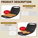 • ساندویچ یا گریل یا وافل، صفحه پوشش نچسب، محافظ ایمنی در برابر گرمای بیش از حد…
